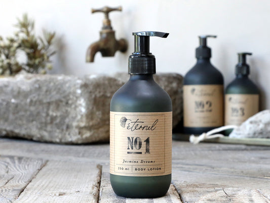 Gavepakke wellness - Eternel Bodylotion og Bodyscrub i duftenJasmin Dreams samt Eternel lava pimpsten pakket flot i gavepose