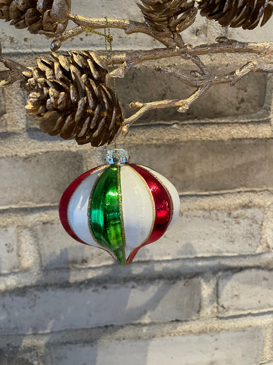 Julekugle glas - striber og guld