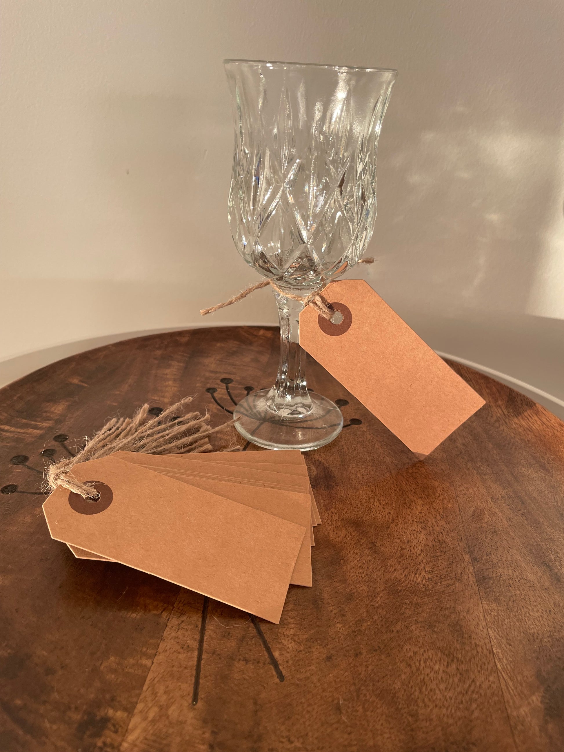 Manilamærker med sisalsnor i bordkortsstørrelse